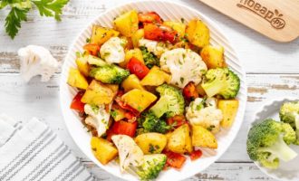 Овощное рагу с лисичками, приготовленное